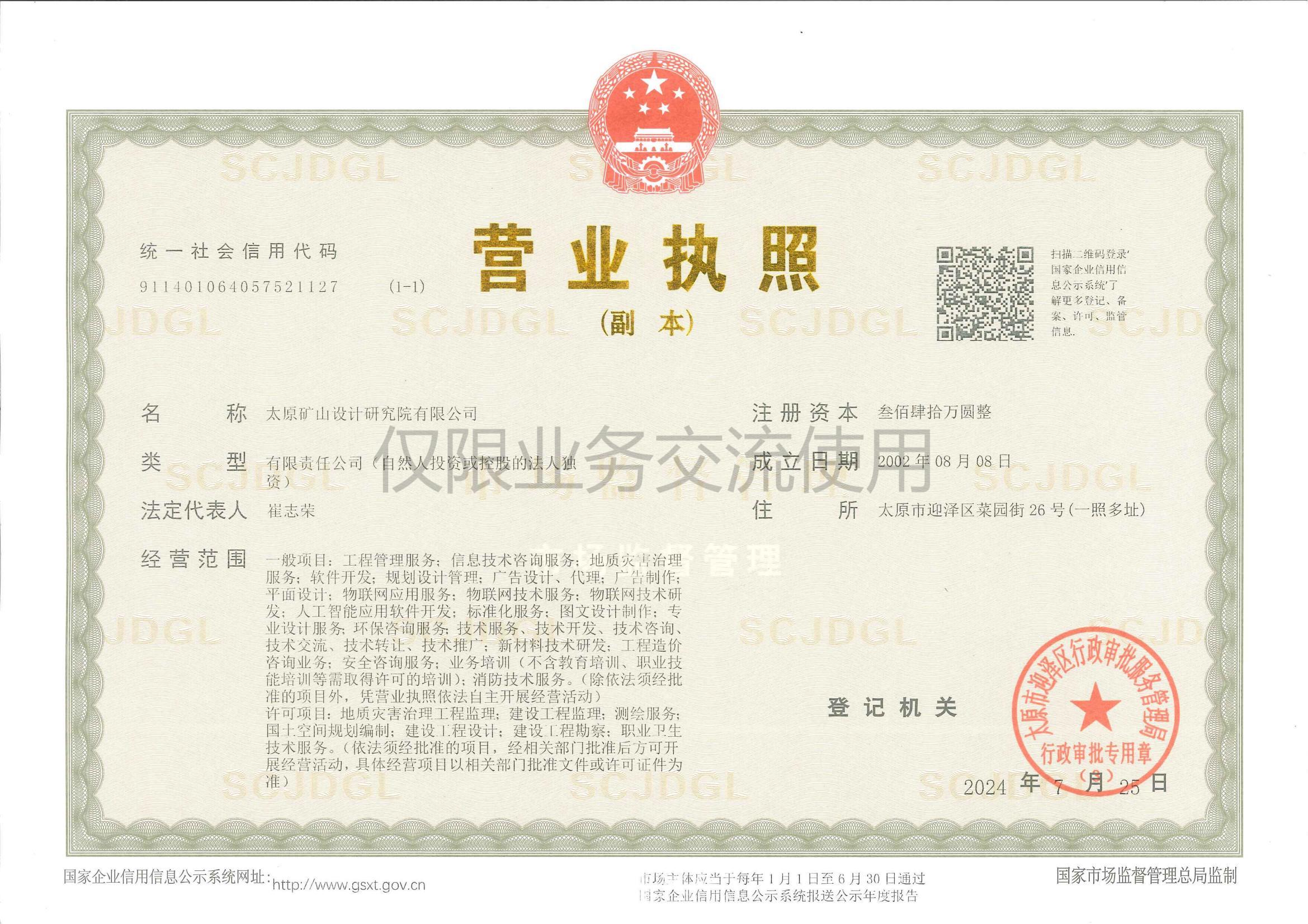 公司主要從事礦山采選尾工程設(shè)計(jì)、智能化及自動(dòng)化礦山、建設(shè)綠色礦山、工程技術(shù)咨詢、規(guī)劃設(shè)計(jì)管理、施工勞務(wù)分包、土地規(guī)劃、地質(zhì)災(zāi)害治理服務(wù)、安全生產(chǎn)技術(shù)服務(wù)、軟件開發(fā)及測(cè)繪服務(wù);煤礦、非煤礦山設(shè)計(jì);煤礦、非煤礦山、危險(xiǎn)化學(xué)品安全評(píng)價(jià)(業(yè)務(wù)范圍:煤炭開采業(yè);金屬、非金屬及其他礦采選業(yè);石油加工業(yè),化學(xué)原料、化學(xué)品及醫(yī)藥制造業(yè));非煤礦山、冶金等工商貿(mào)企業(yè)、危險(xiǎn)化學(xué)品從業(yè)單位安全生產(chǎn)標(biāo)準(zhǔn)化評(píng)審;公共場所衛(wèi)生、生活飲用水、公共場所集中中央空調(diào)通風(fēng)系統(tǒng)的檢驗(yàn)、檢測(cè)、評(píng)價(jià);職業(yè)健康檢測(cè)檢驗(yàn);建設(shè)項(xiàng)目職業(yè)病危害評(píng)價(jià)、職業(yè)危害因素檢測(cè)與評(píng)價(jià);安責(zé)險(xiǎn)技術(shù)服務(wù);業(yè)務(wù)培訓(xùn)等工作。
